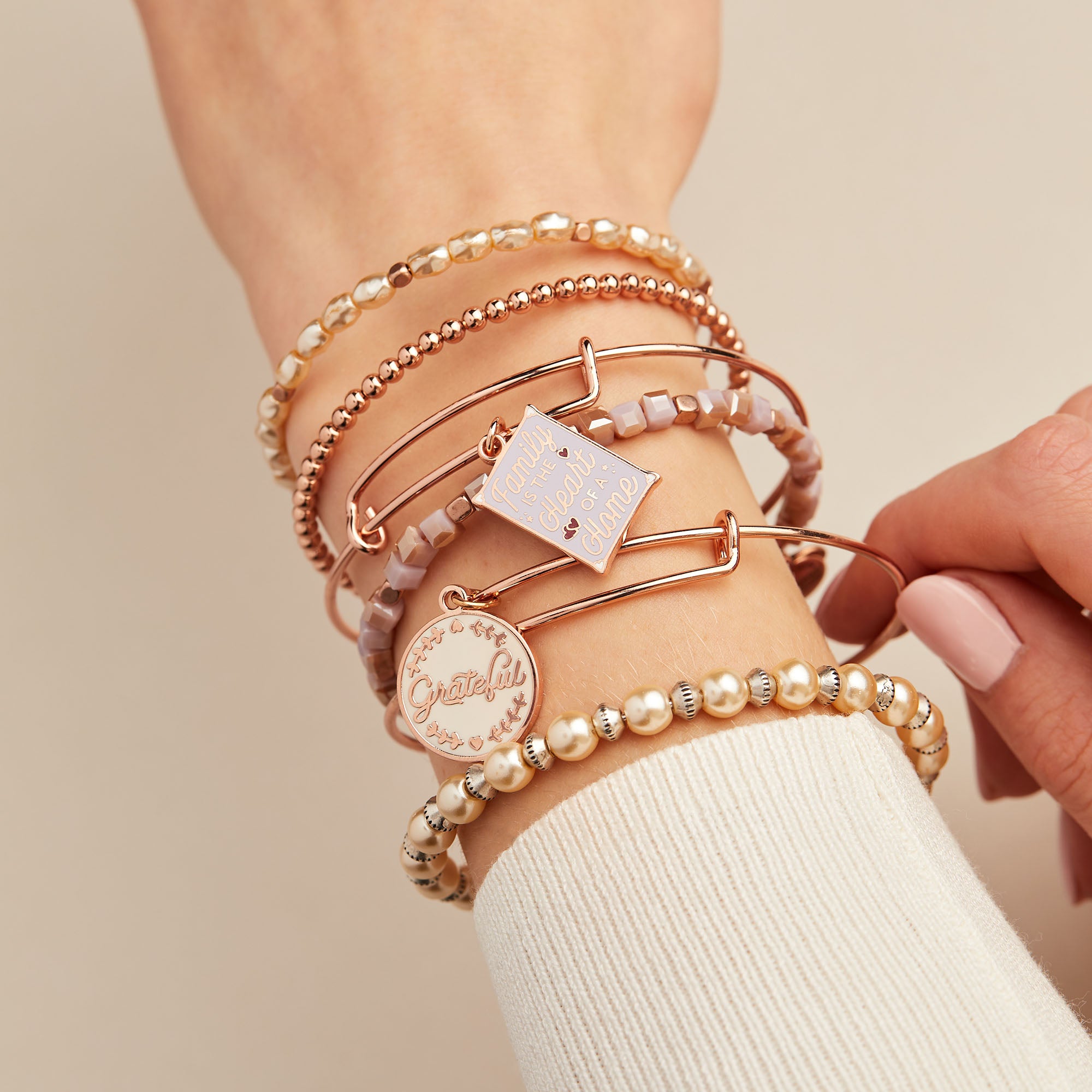 Our jewelry was created with the utmost love and care. Follow these guidelines to help keep your jewelry looking its best year after year. Use the ALEX + ANI polishing cloth to effectively clean your jewelry – great to use on Trend metals, Stainless Steel, and Precious metals. If your jewelry requires further cleaning, use mild soap, water and a soft cloth. Rinse with clean water and pat dry. Use the soft toothbrush to clean crystals if necessary. Make sure your jewelry is completely dry before storing.