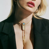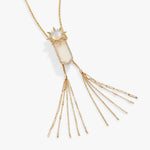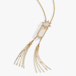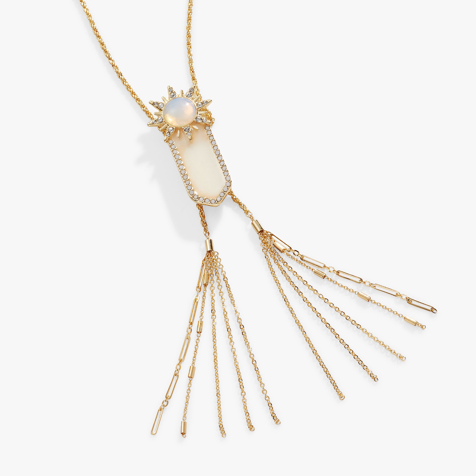 Give your summer outfit a sparkling update with the Festival Sun Adjustable Slider Necklace. This exquisite necklace features an expandable chain, a large sun pendant with an iridescent glow, and hanging chain tassels for extra glam. Shine on!