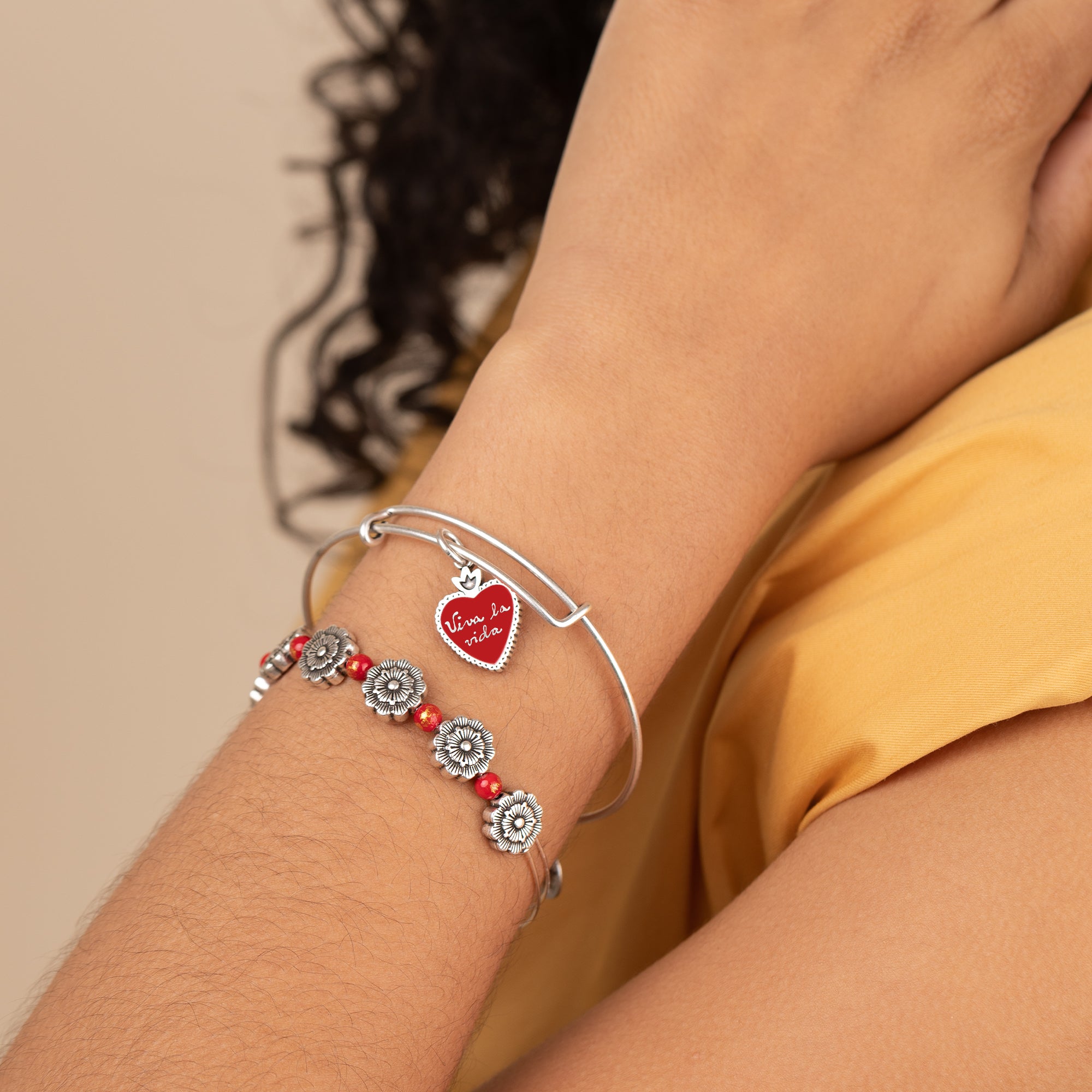 Frida Kahlo 'Viva la Vida' Sacred Heart Charm Bangle, Set of 2