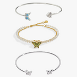 Spread your wings with our enchanting Garden of Wings Butterfly Bundle! This delightful trio features three stunning butterfly-inspired designs: the elegant Emerald Swallowtail Butterfly Charm Bracelet, the shimmering Butterfly + Crystal Flex Cuff, and the dimensional Puffy Butterfly Crystal Flex Cuff. Each piece celebrates nature's most graceful fliers with sparkling crystals and charming details. Mix, match, and layer these beauties to express your unique style—or gift the complete set to someone who loves all things whimsical and wonderful. Perfect for butterfly enthusiasts and charm collectors alike!