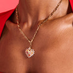 Let your heart shine bright with this delightful pendant necklace! Sparkling rainbow stones dance across a charming heart charm, framed by a lustrous pearl border that adds timeless elegance. Flip it over to reveal our iconic etched star logo on the back. A playful way to celebrate love, joy, and all the colorful moments that make life magical.