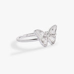 Delicate wings adorned with sparkling stone accents and intricate snowflake etchings, all wrapped in a shimmering clear enamel finish. This whimsical butterfly ring brings a touch of winter magic and graceful elegance to your everyday style.