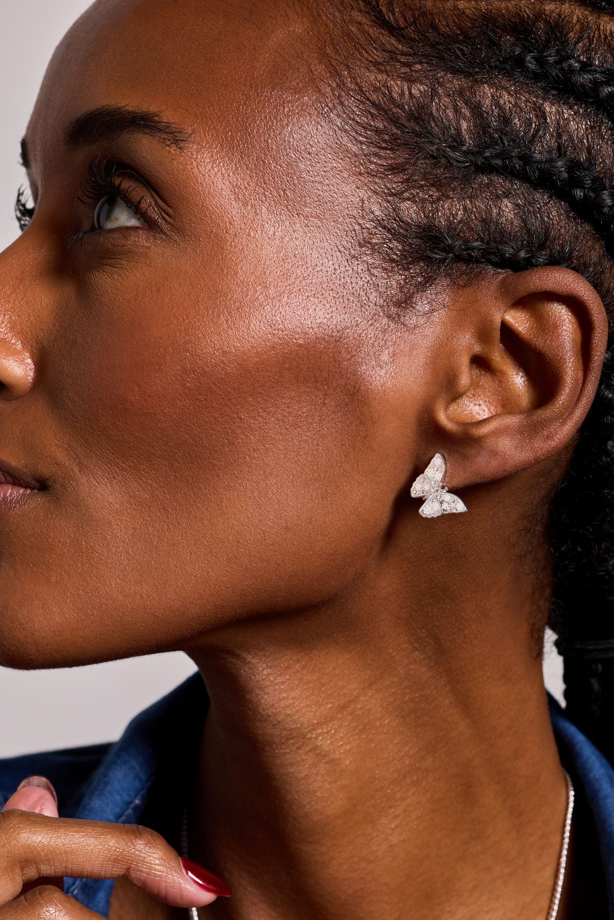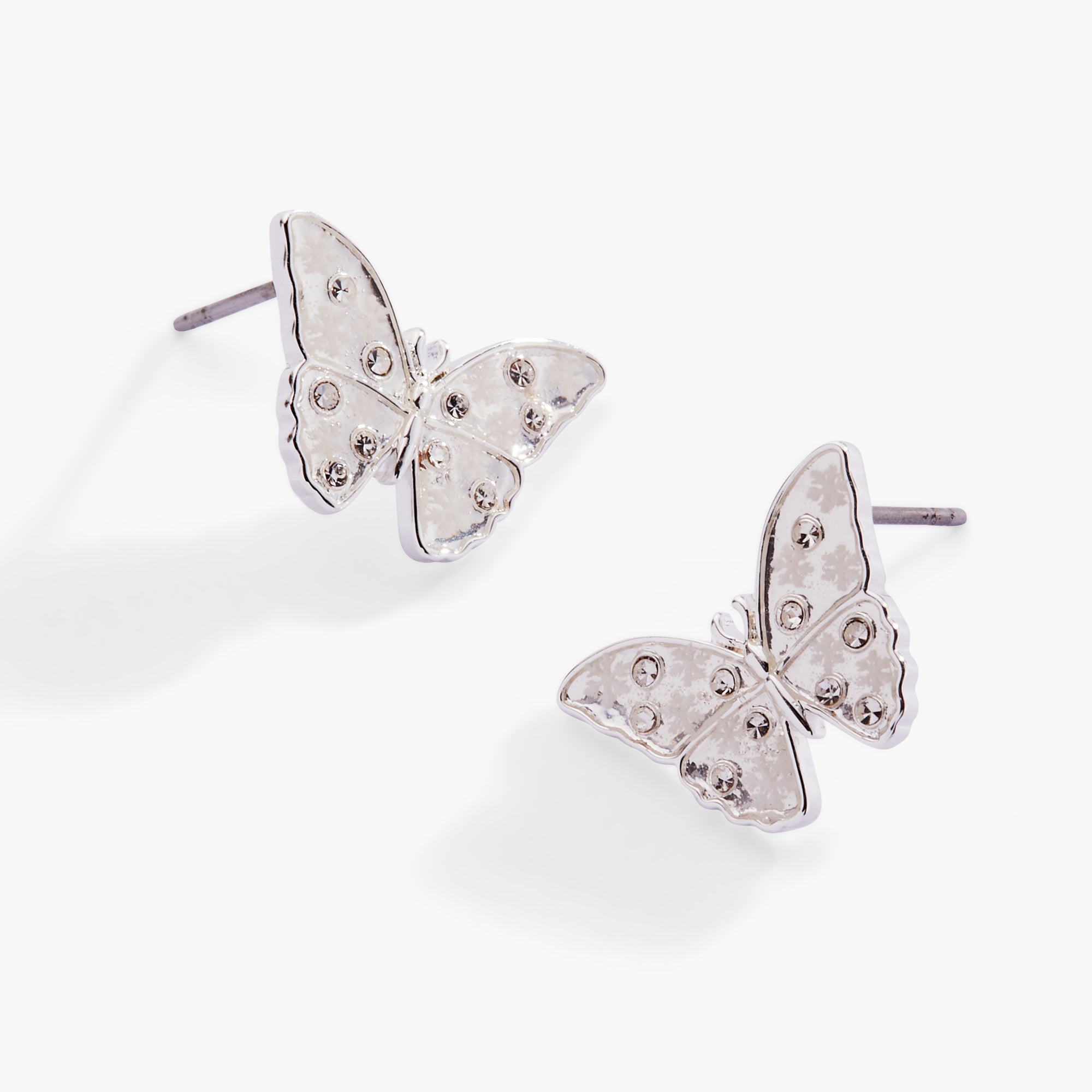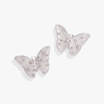 Capture the enchantment of a frosty season with these charming butterfly studs. Featuring delicate glass wings embellished with shimmering stone details and intricate snowflake patterns, each pair is sealed with a crystal-clear finish that catches the light beautifully. Perfect for adding a hint of wintry wonder to your daily style, these playful studs celebrate nature's most magical moments.