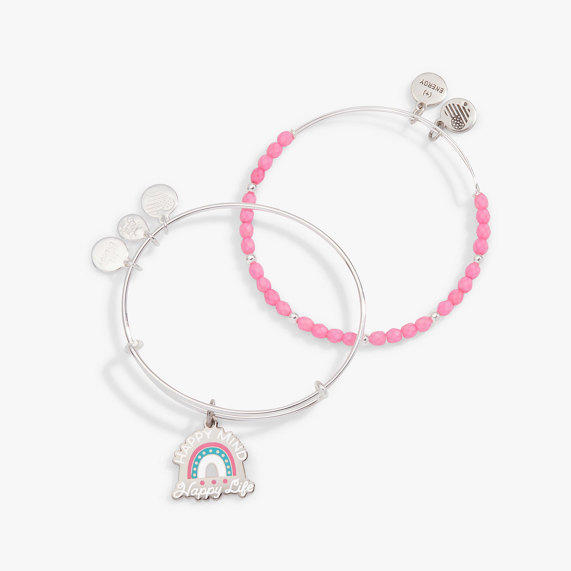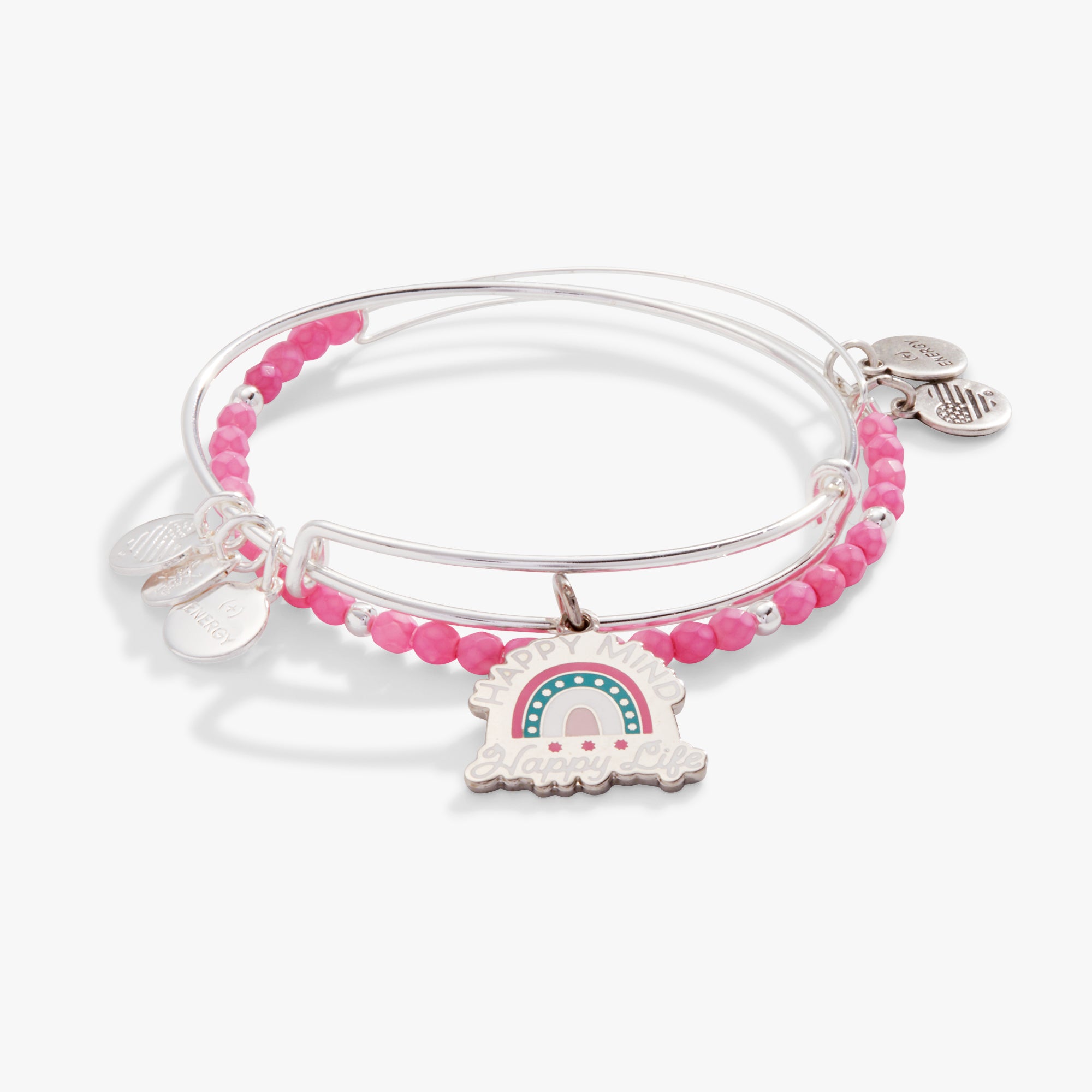 'Happy Mind, Happy Life' Charm Bangle, Set of 2