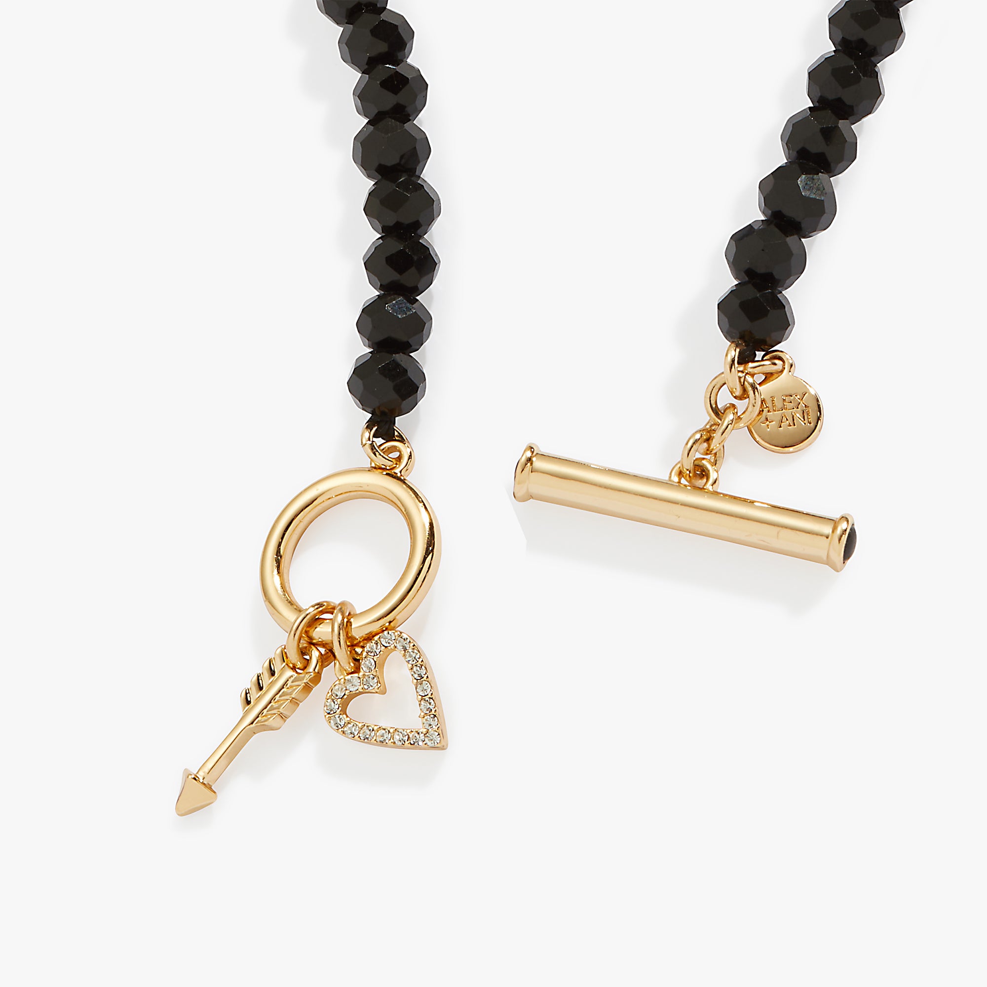 Nothing represents love like the heart. It is life. It is love. It is our emotional center. When we feel love, we radiate the brightest. This Love and Intention Convertible Wrap Bracelet can be worn four ways: triple wrap as a layered bracelet, wear as a long necklace, double wrap as a choker necklace or style as a Y-neck lariat necklace. A string of jet-black cubic zirconia stones features a clear crystal-encrusted heart and arrow charm on the toggle closure. Wear this sparkling symbol of love and intention on any occasion that deserves a little extra shine.