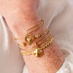 When you’ve got love and luck, you’ve got everything you need. This Heart and Four-Leaf Clover Open Cuff Bracelet has a crystal-accented four-leaf clover charm on one end, and a crystal-accented heart charm on the other. Wear it alone for a touch of good fortune, or stack it with other bracelets that tell your story.