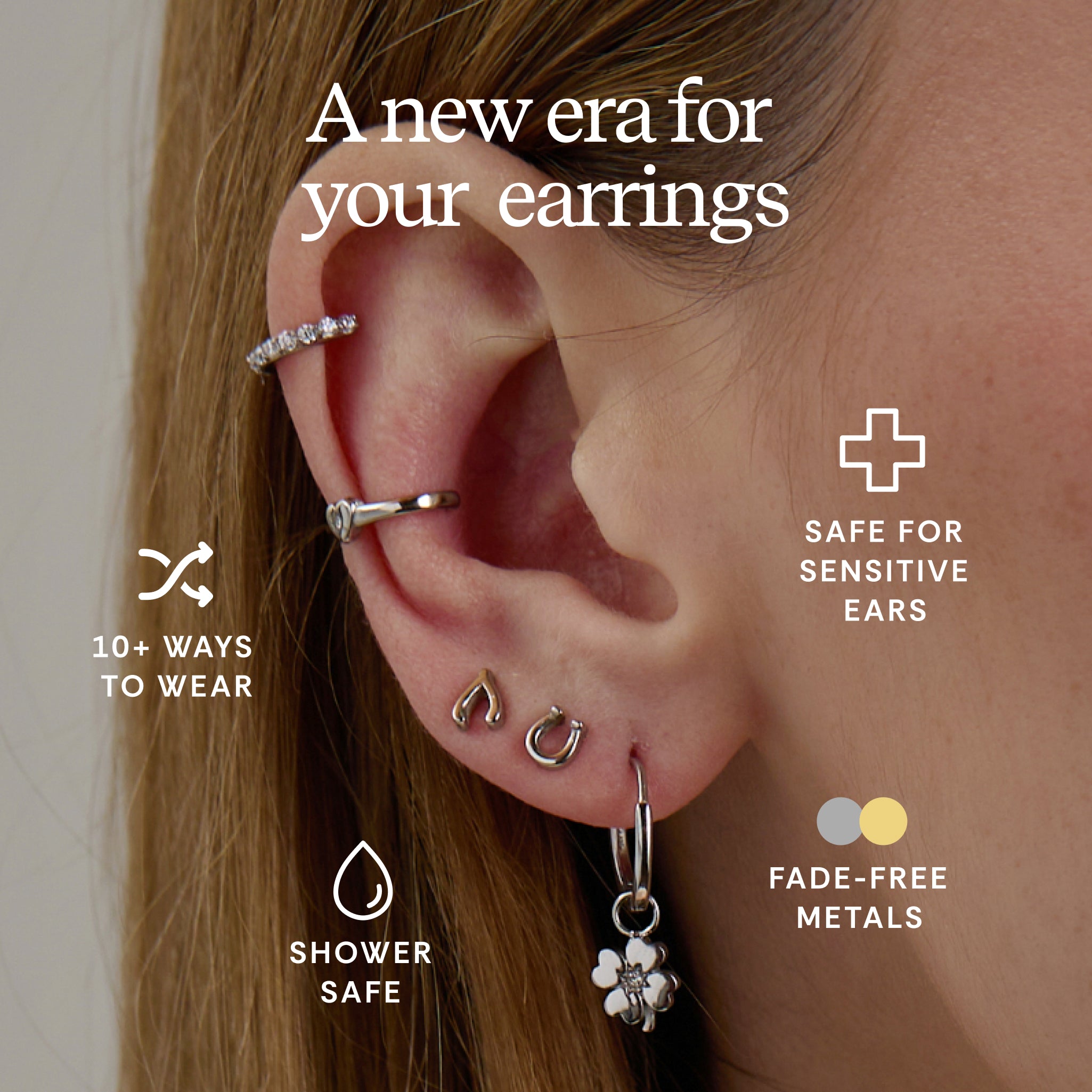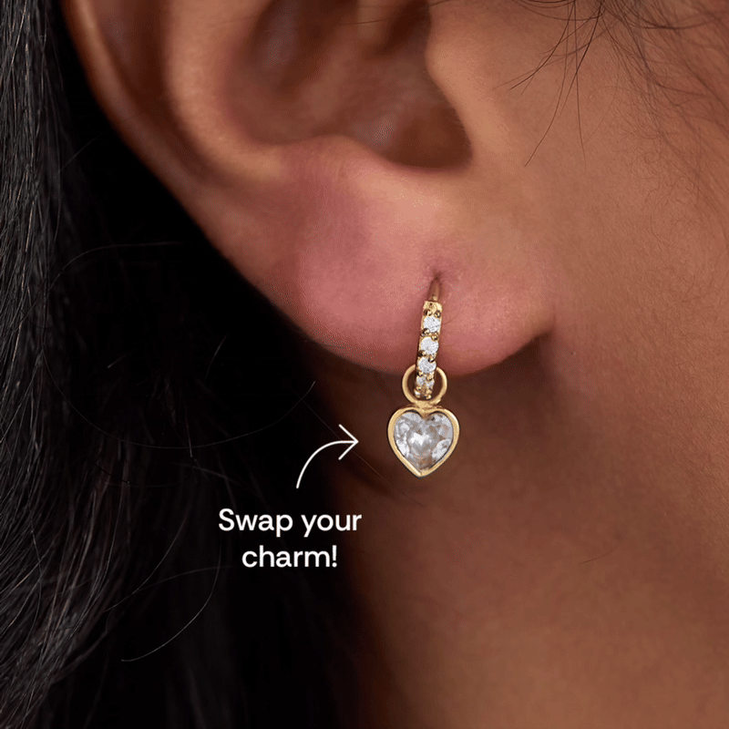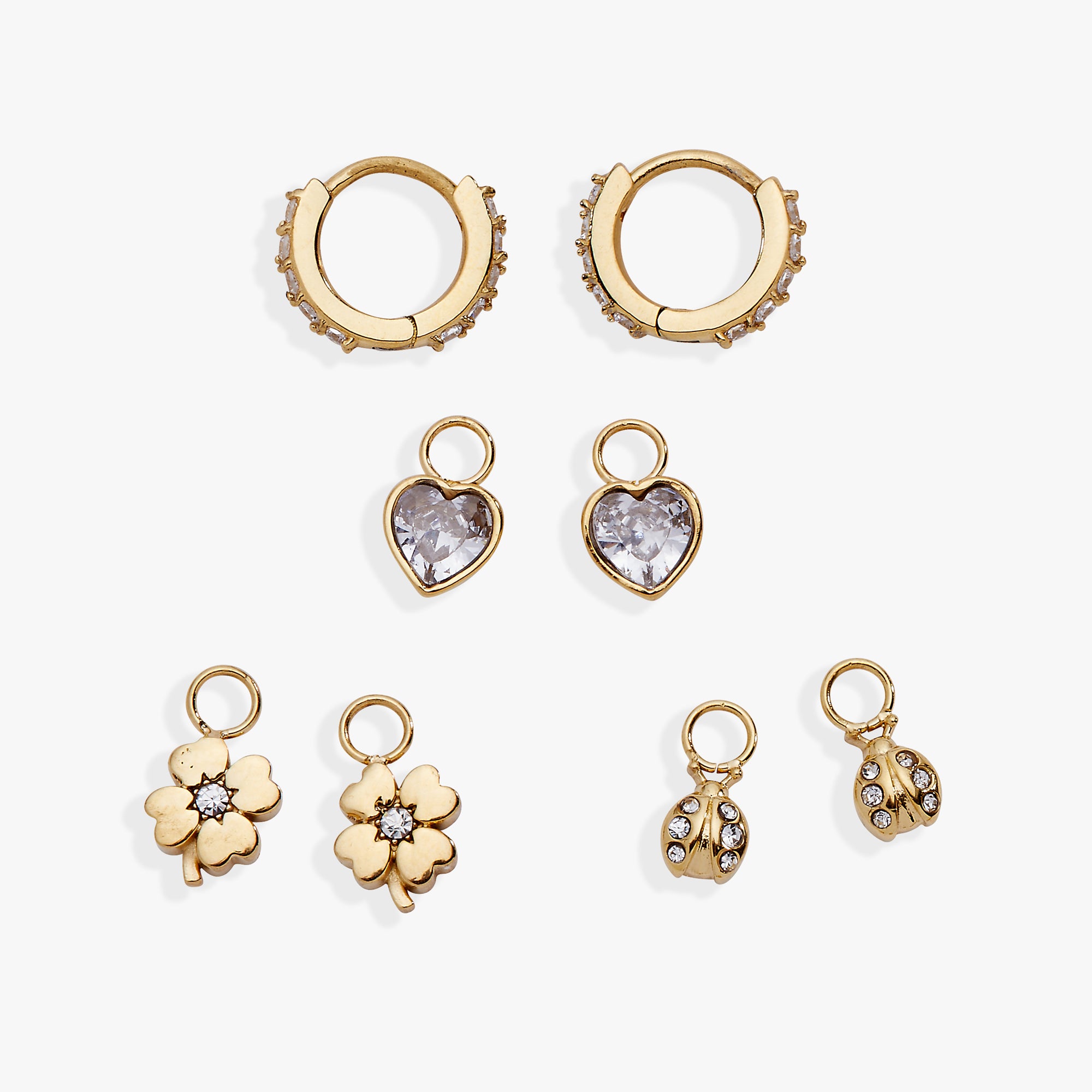 One hoop, endless possibilities. The Love & Luck Interchangeable Huggie Set includes a pair of pavé crystal huggie hoops and three removable charm pairs—hearts, clovers, and ladybugs—each symbolizing a little love or good fortune. Wear them with or without charms, mix and match, or stack them with other earrings in your rotation. A 4-piece set made to bring meaning to your ear party—and a little luck to your look.