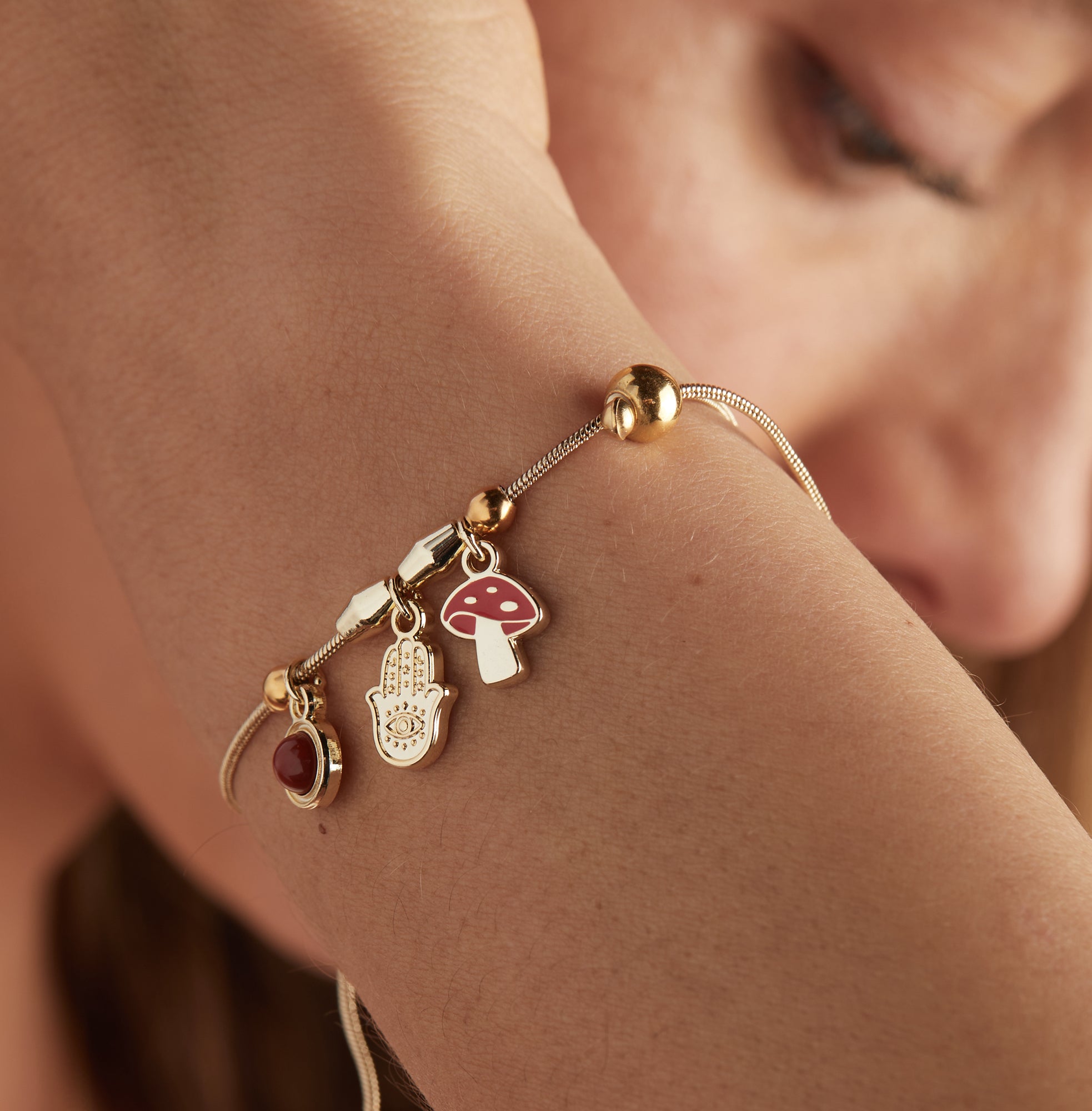 Originating from the Hebrew word "hamesh," literally meaning "five," the Hamsa (Hand of Fatima) is an ancient talisman symbolizing feminine power. Believed to channel the forces of good, the hand is worn as a defense against negative energy, as it deflects the gaze of the evil eye away from the wearer.