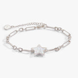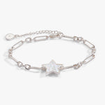 A star to guide you. This silver-finish adjustable bracelet features a luminous mother of pearl star charm, symbolizing wisdom, intuition, and protection. Designed with a lobster clasp closure for a customizable fit, this piece is a subtle yet meaningful way to carry celestial energy wherever you go.