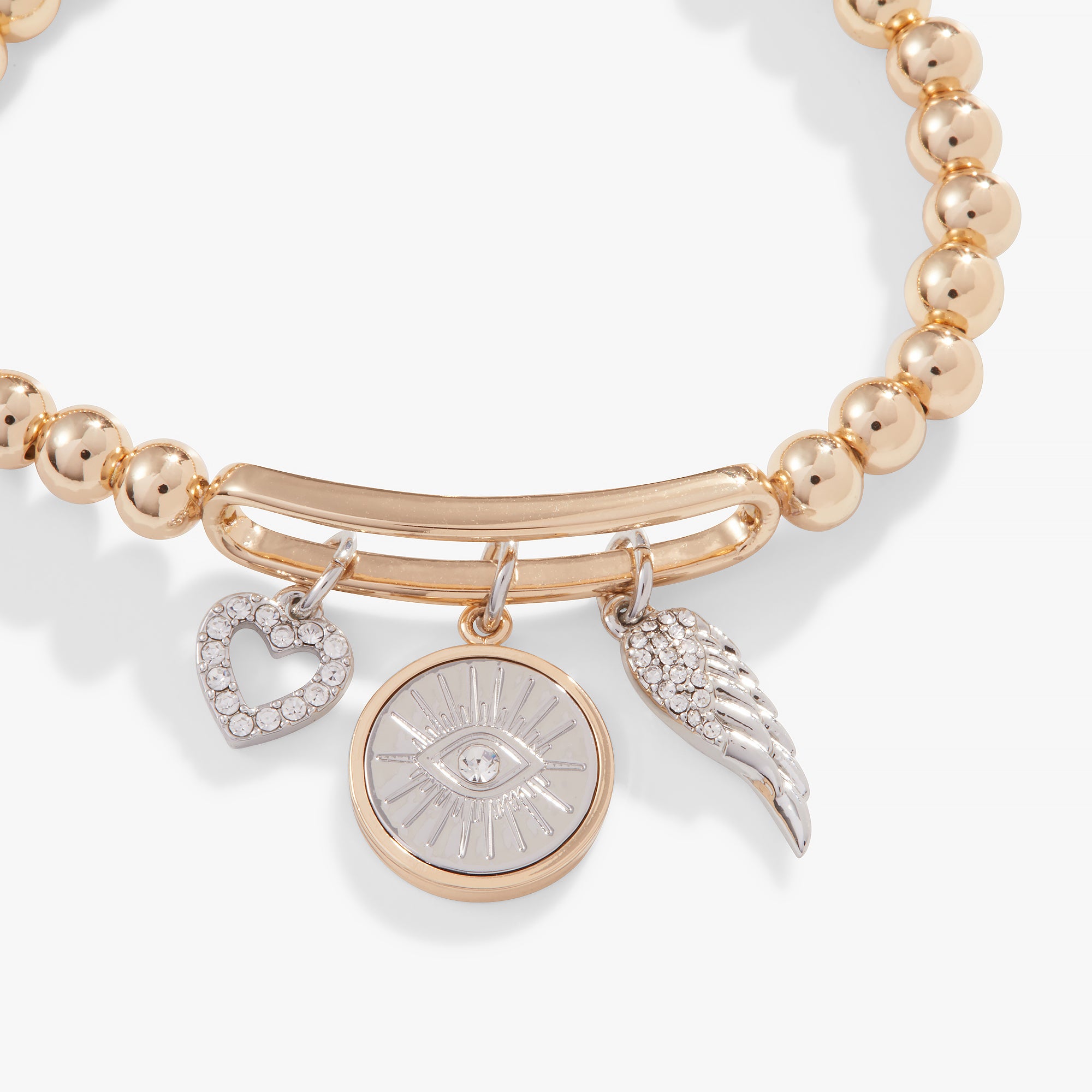 Inspired by the traditional nazar amulet, which means 'vision' in Arabic, the symbol of the evil eye stares back at the world. An unblinking emblem of strength, the protective eye symbolizes the divine, watchful gaze that cannot be deceived, seeing only truth. Empowered with peace and protection, you know all is well.