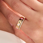 Embrace spiritual intention with this elegant two-piece ring set, thoughtfully designed to anchor your faith journey. The first ring features a sophisticated gold-plated band adorned with vibrant enamel detailing—delicate doves, intertwined hearts, and an olive branch—symbolizing peace and hope. Subtle crystal stone accents catch the light beautifully, while the empowering mantra "Pray, Wait and Trust" is gracefully inscribed on the inside, creating a personal reminder only you will see. The second ring showcases a luminous crystal pavé band that complements the first perfectly, adding dimension and sparkle to your stack. Together, these pieces create a harmonious combination that eliminates the uncertainty of coordinating individual rings. Ideal for those seeking to express their spirituality through meaningful jewelry, this set serves as both