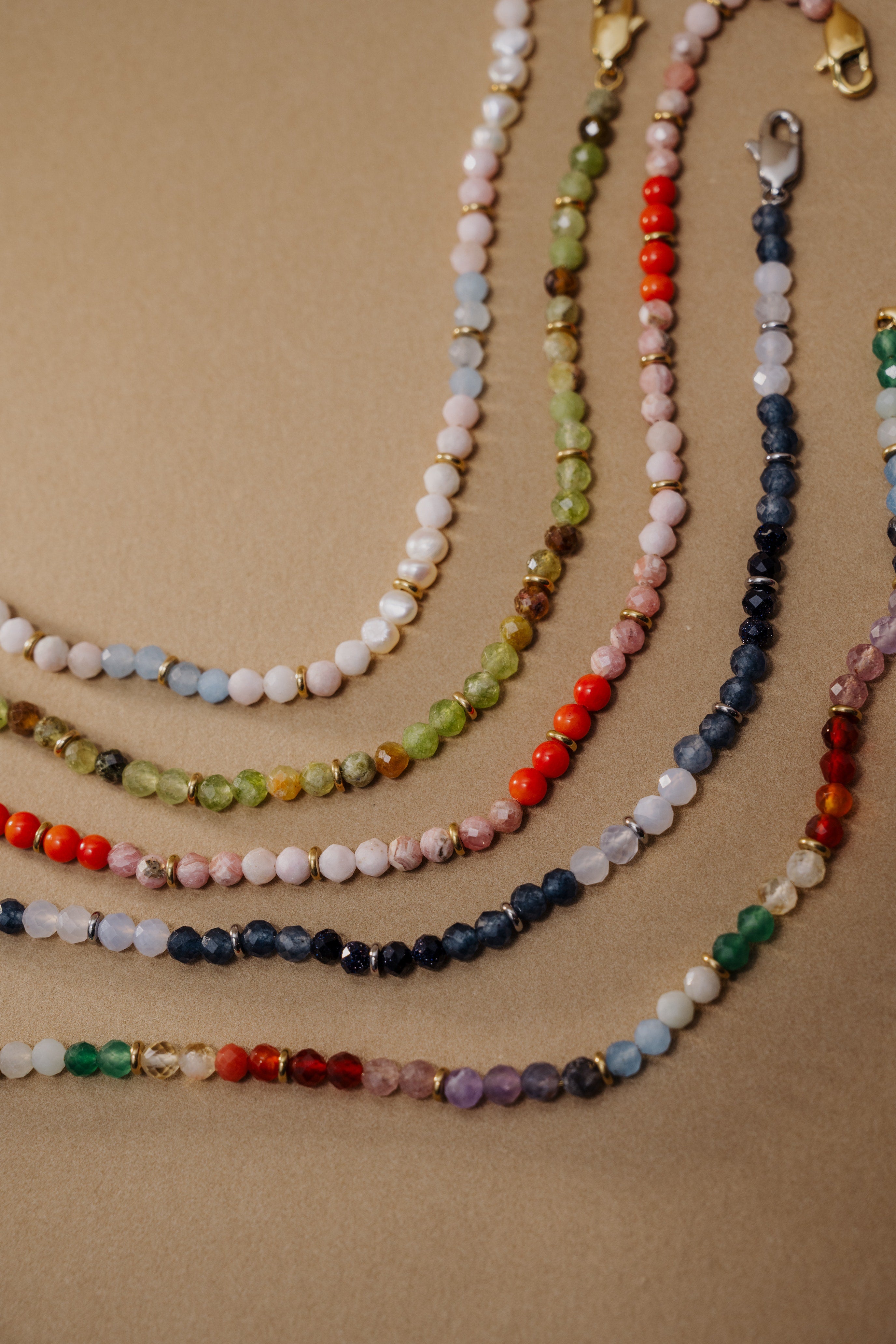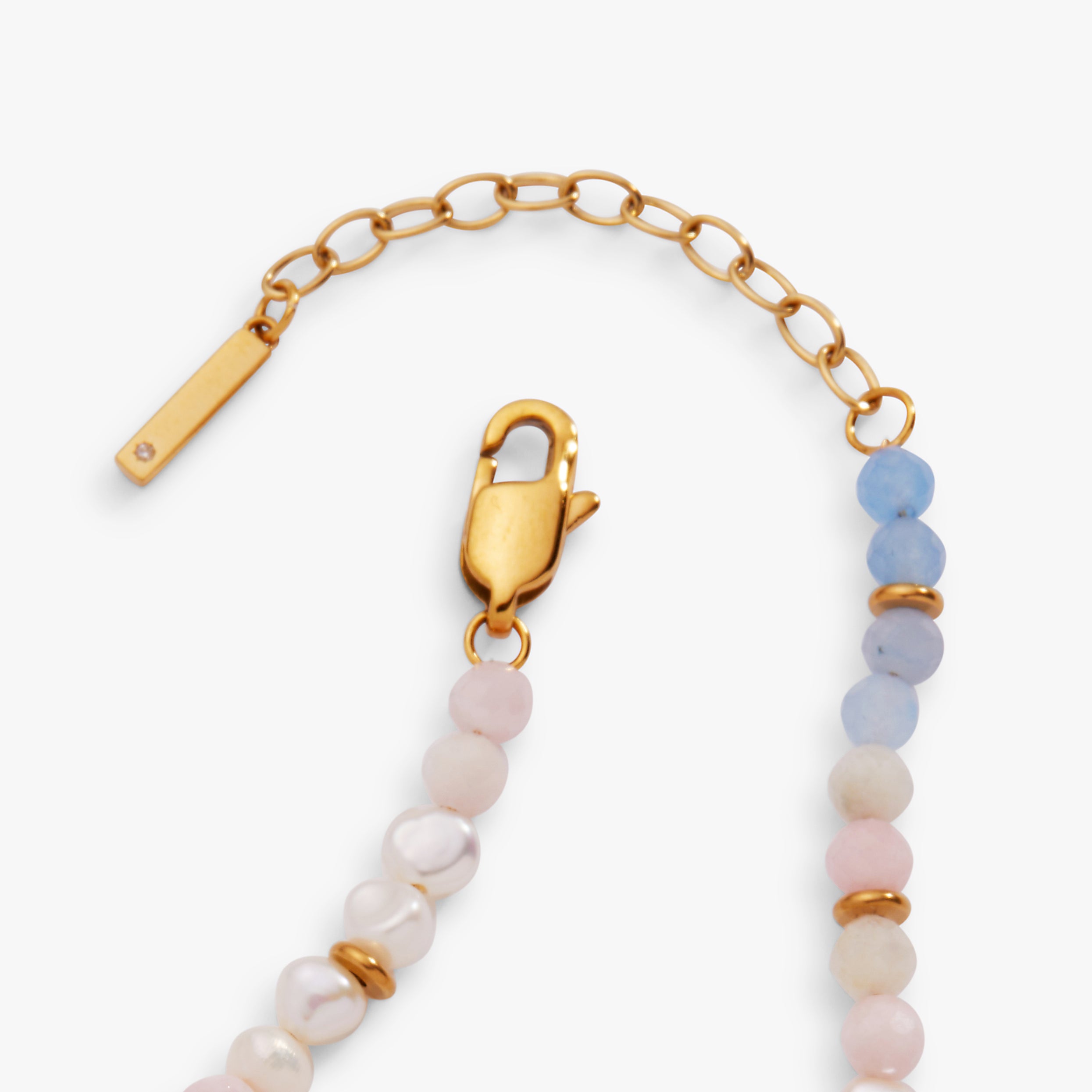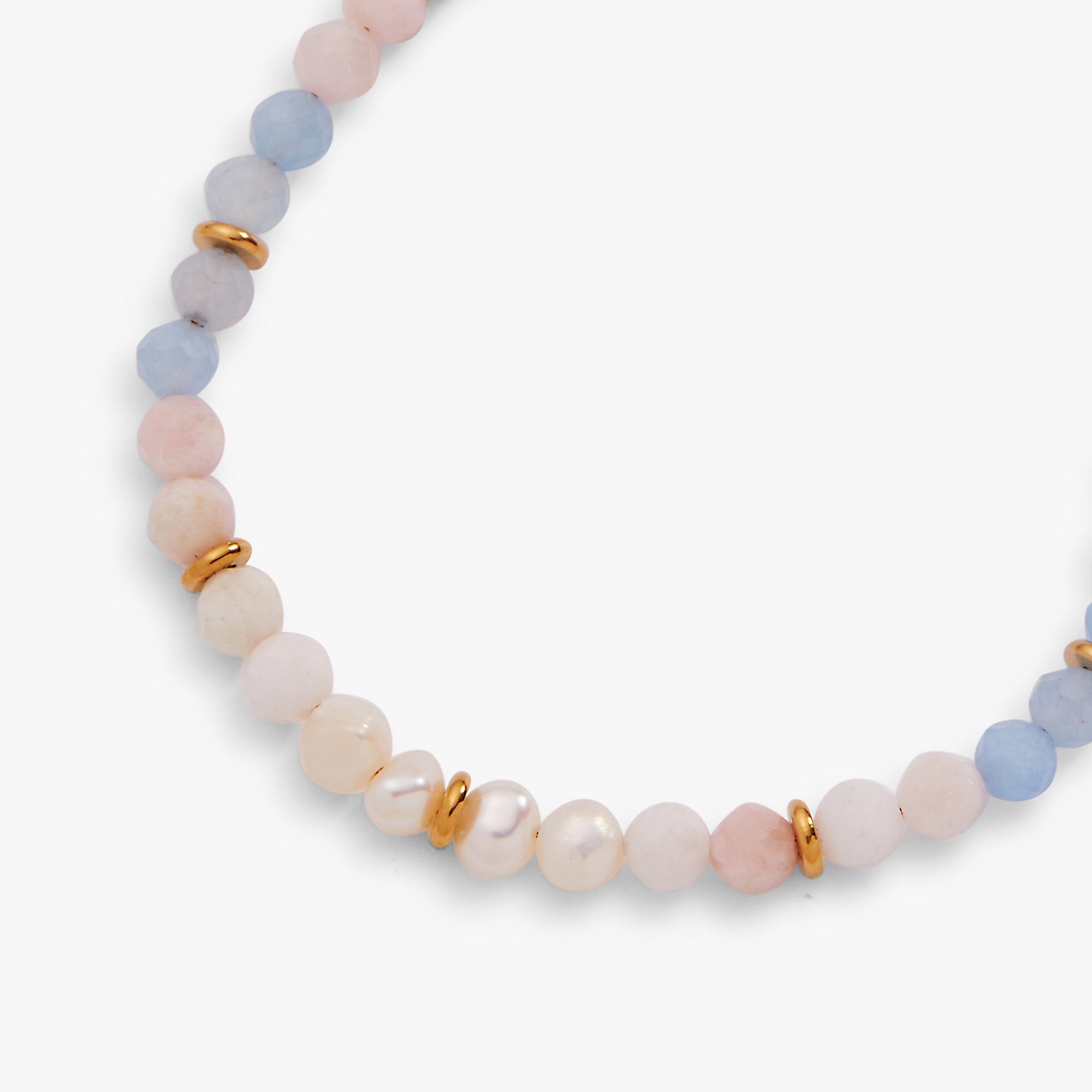 Dive into dreamy coastal vibes with this beaded anklet featuring faceted semi-precious stones and freshwater pearls in soft shell pink, sandy, and aqua blue hues that flow in a gorgeous ombre gradient. The adjustable threader extender chain makes it the perfect canvas for layering with your favorite interchangeable charms, letting you mix, match, and make it entirely your own. Whether you're stacking it with other pieces or letting it shine solo, this breezy color-pop is your ticket to effortless, personalized style.