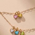 This charm features a sparkling faceted heart-shaped Tourmaline-colored cz stone for October, nestled in a bezel setting with our signature star cutout on the back. “Serenity” is delicately etched on the side, linking it to your birth month. Add a fun twist and personal touch to your bracelet or necklace stack with this vibrant birthstone charm that brings color and meaning to your look.