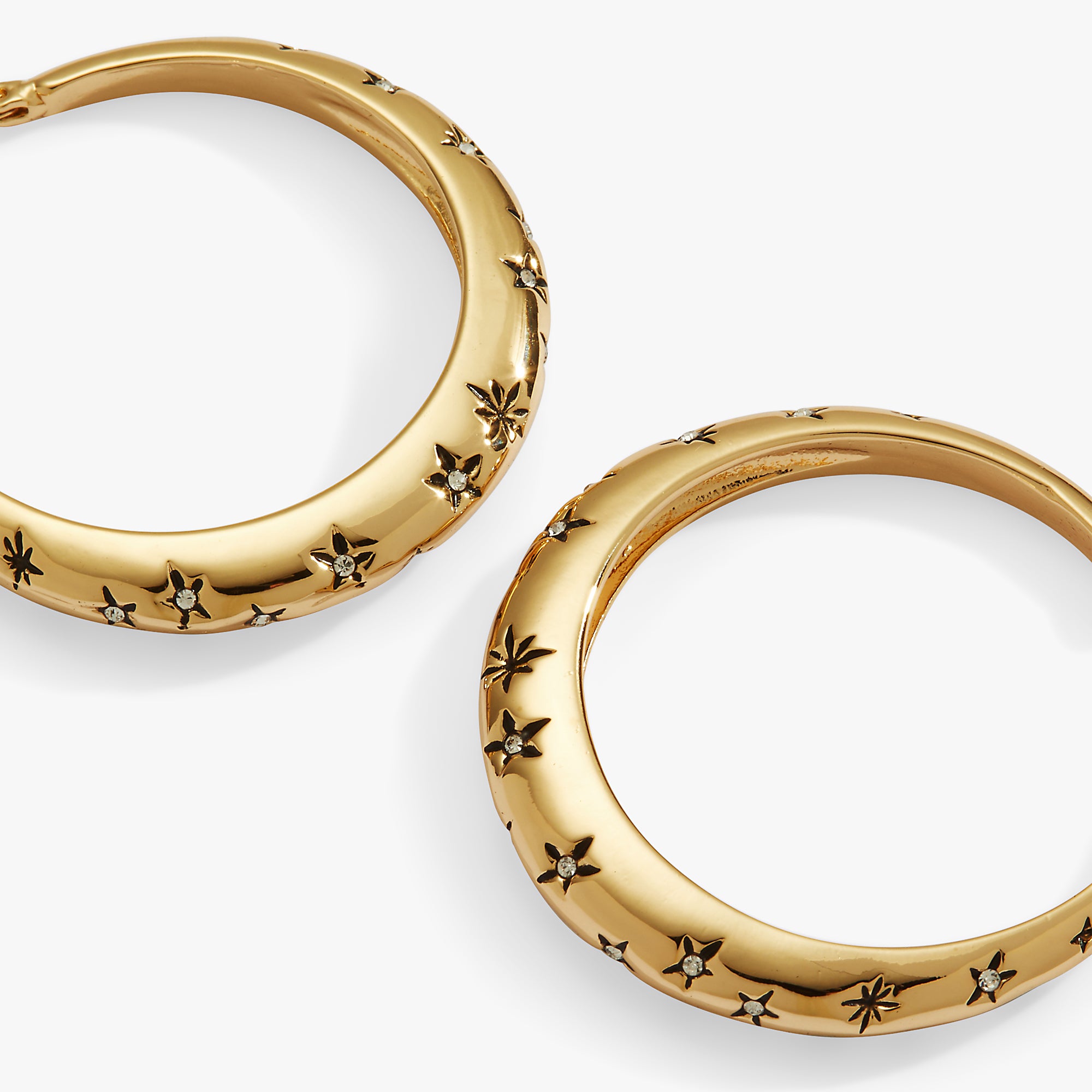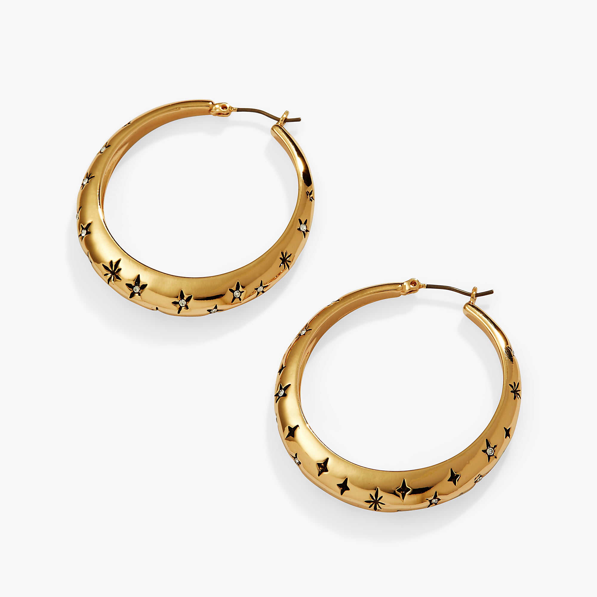 The star is a guiding light that energizes and heals. It holds the power to brighten even the darkest of skies. The Stargazer Hoop Earrings are a reminder to look for the power to brighten the world around you, within you. These fun hoops are finished in a shiny gold tone and are complete with cubic zirconia crystal stars throughout. Wear this jewelry box staple with any OOTD that needs a little sparkle and shine.