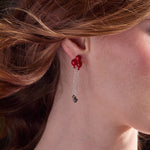These spooky earrings bring a playful twist with their whimsical design featuring the iconic red balloons from IT in dimensional silver plating. Silver chains swing like balloon strings, held by Pennywise’s instantly recognizable ruffled glove. With their gentle movement and eerie charm, these earrings perfectly embody the Welcome to Derry™ spirit.