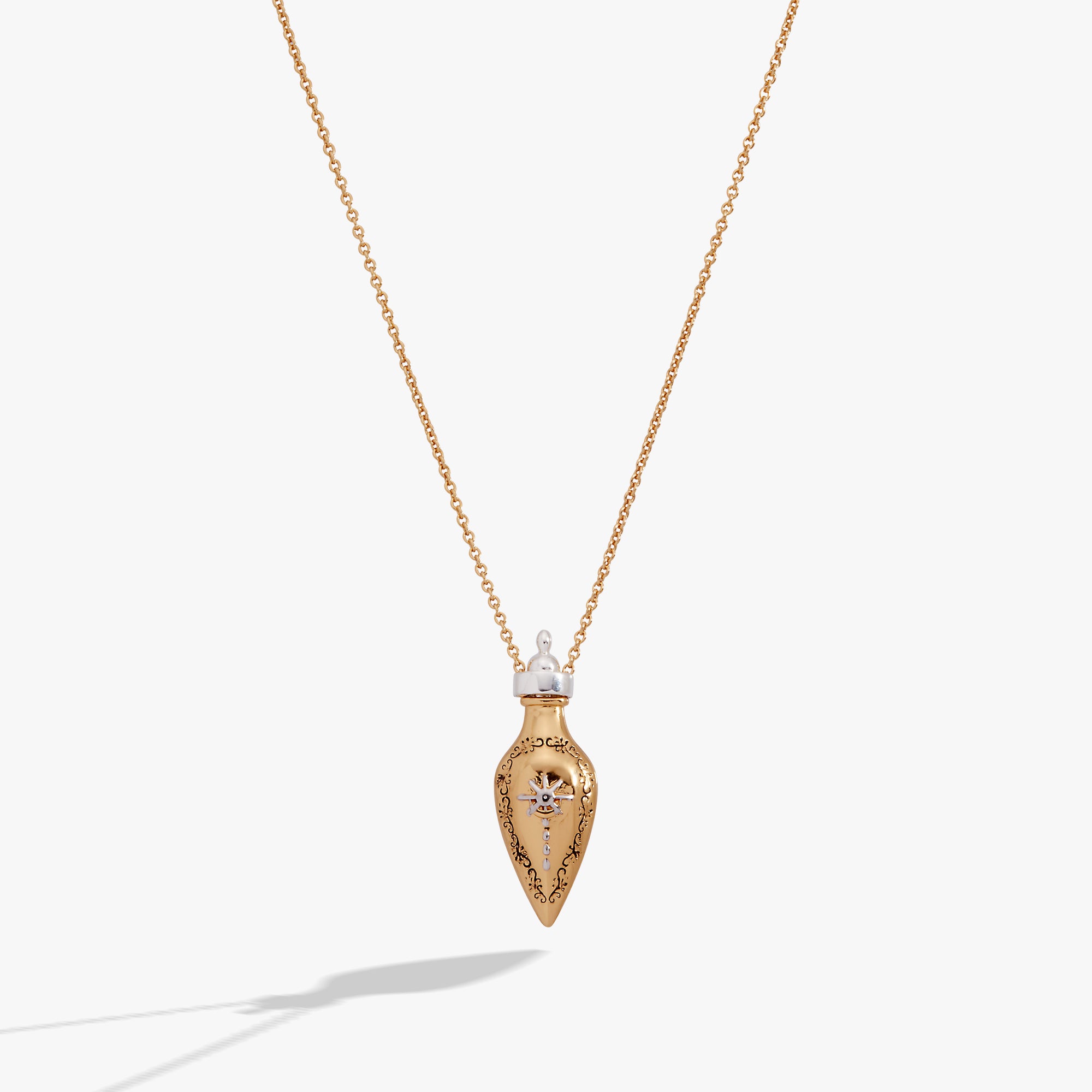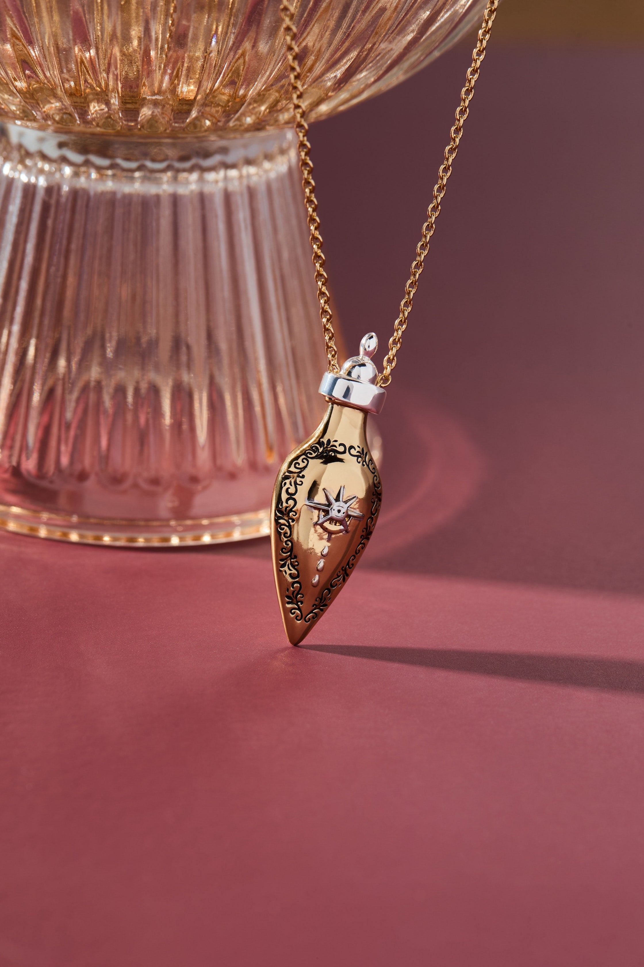 Unlock celestial magic with this enchanting potion bottle slider necklace, where cosmic wonder meets wearable mystery. The dimensional two-tone bottle features an etched "Written in the Stars" message hidden inside, revealing its secret only when you peek within. Adjust the slider chain to your perfect fit, and discover that the potion bottle actually opens—transforming this piece into an interactive treasure. Whether you're a stargazer, a lover of hidden details, or someone who believes in a little everyday magic, this necklace invites you to carry your own cosmic story close to your heart.