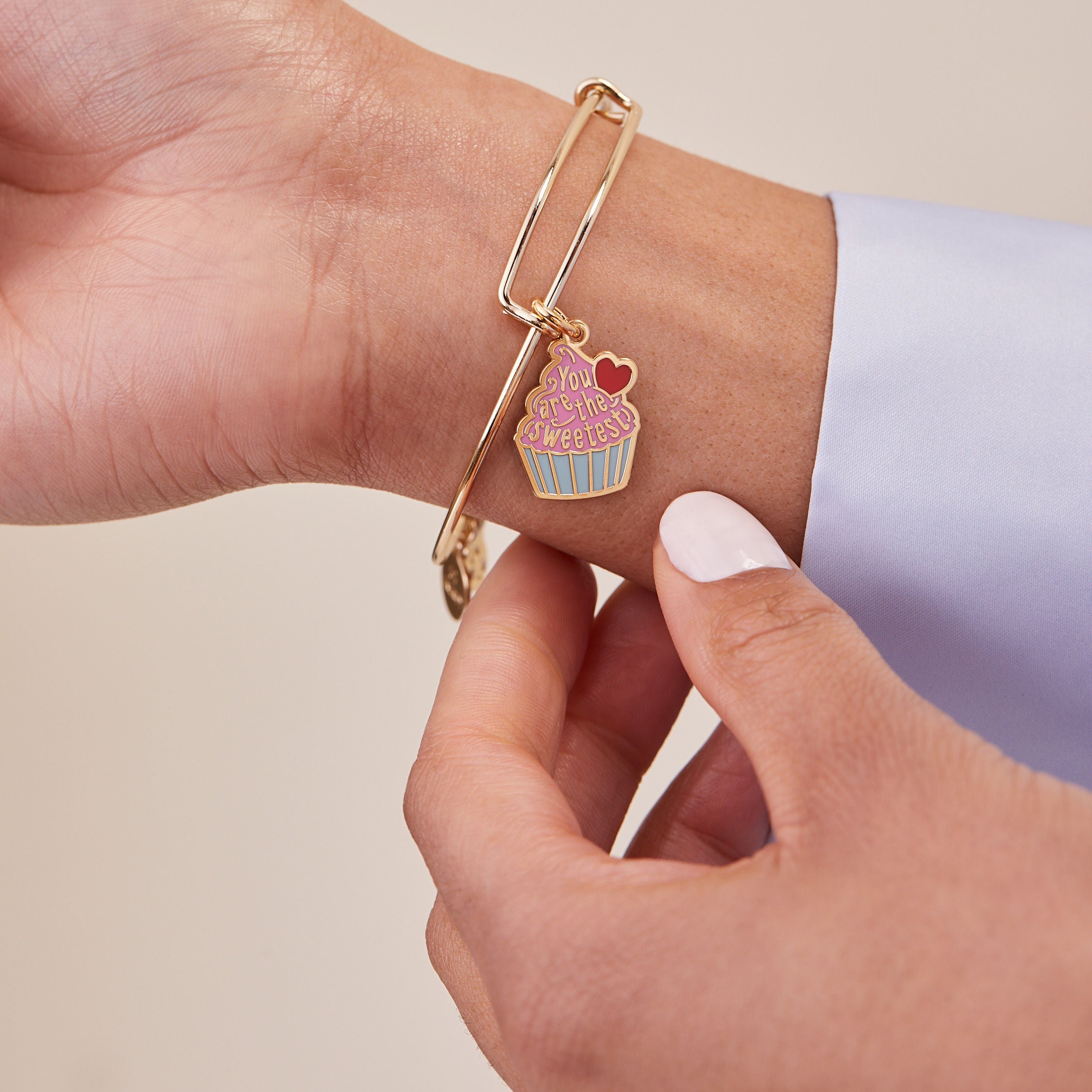 'You are the Sweetest' Cupcake Charm Bangle Bracelet